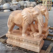 晚霞紅石雕大象一對戶